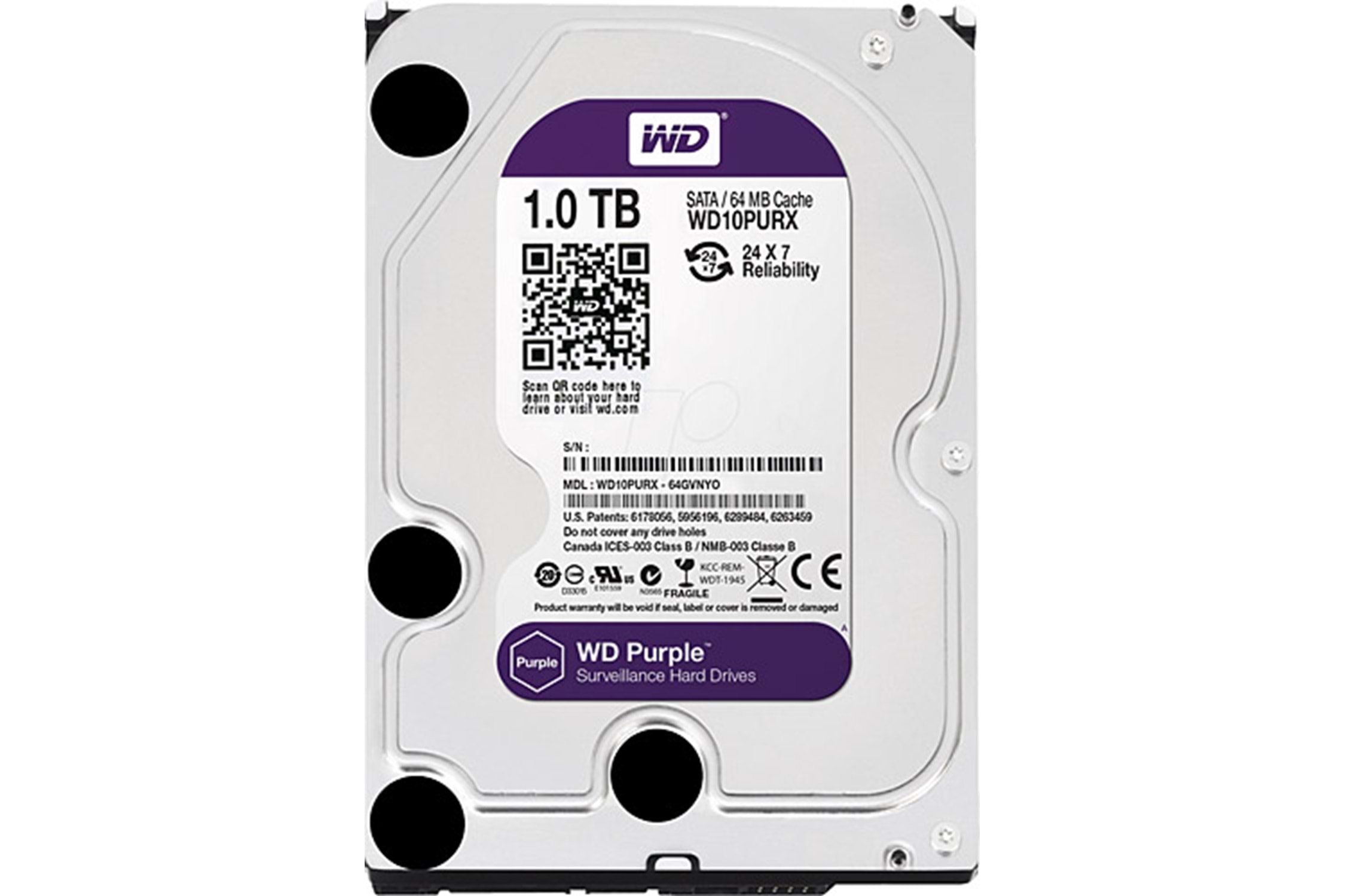 1 TB WD 3.5 PURPLE SATA3 5400RPM 64MB 7/24 GUVENLIK WD11PURX 2 YIL İTHALAT GARANTİ